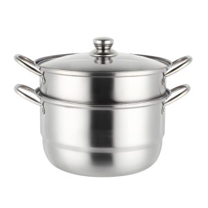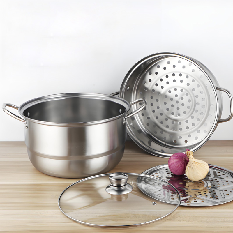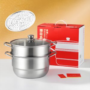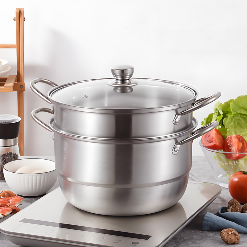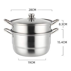 This 2-tier stainless steel steamer pot is thickened, durable and induction compatible. It offers even heat distribution and is easy to clean. Perfect for home kitchen use, steaming and soup making.