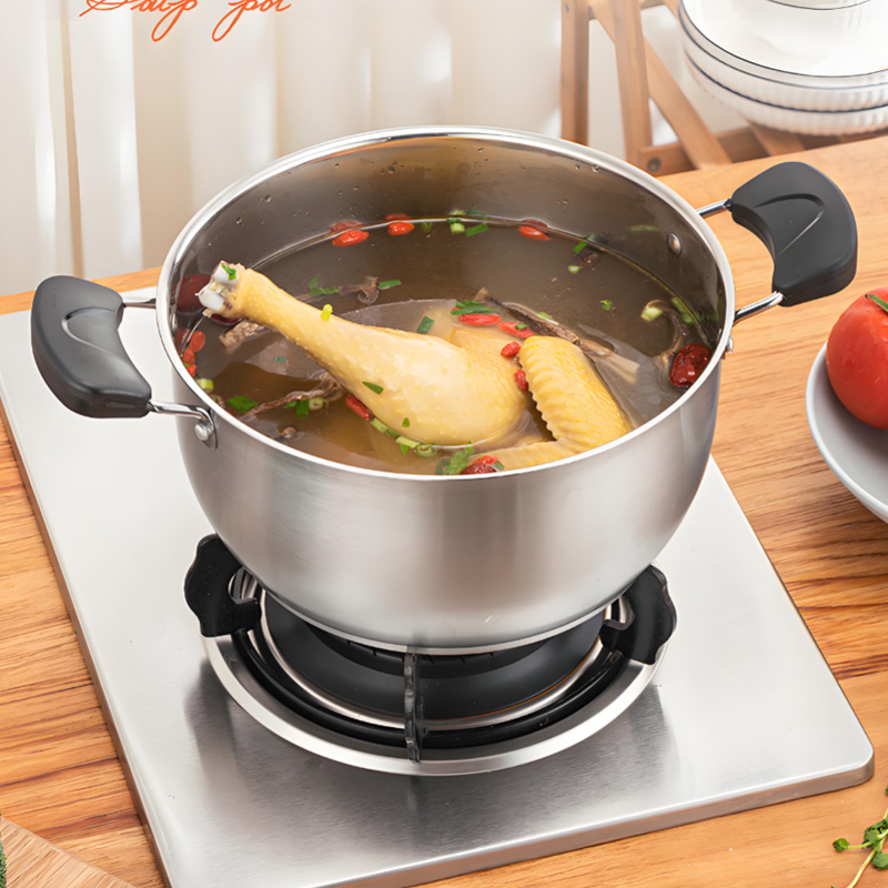 This 26cm soup pot is made of high-quality thickened composite stainless steel, featuring stable performance, even heat conduction and high durability. Designed with double firm handles, it is safe, comfortable to grip and easy to move. The large capacity is perfect for home cooking, boiling water, making soup and stewing various ingredients. It is compatible with induction cookers, gas stoves and other heating sources, widely used in daily kitchens. With a smooth surface, the pot is easy to clean and maintain. Elegant appearance and practical functions make it an ideal choice for promotional gifts, business gifts and wholesale. A necessary and cost-effective cookware for families and gifting.