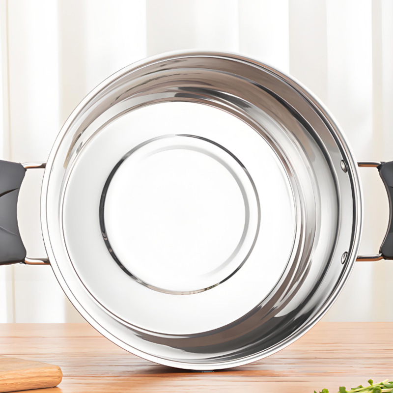 This premium stainless steel cookware is made of high-quality thickened material for durable daily use. It features double ergonomic handles for safe and easy handling. The even-heating design ensures fast and stable cooking performance. Compatible with induction, gas, electric and ceramic stoves. With a smooth surface, it is easy to clean and maintain. Perfect for home kitchen, soups, stews, steaming and daily cooking. A practical and essential tool for every household.