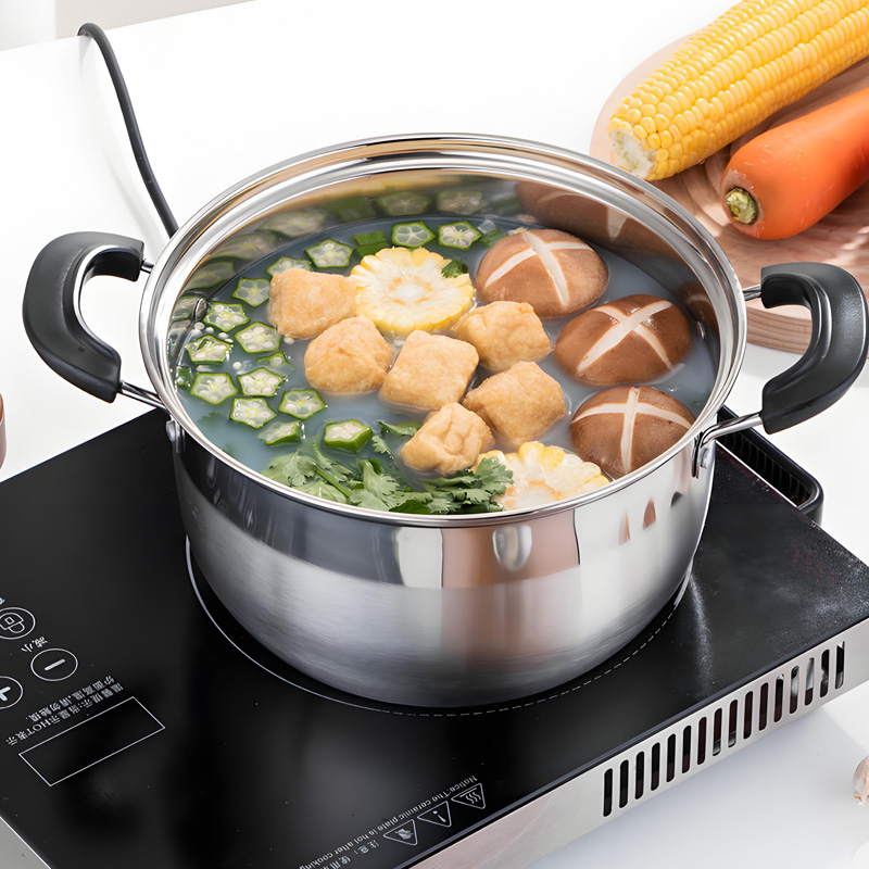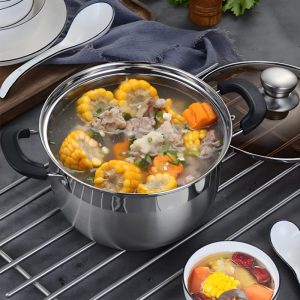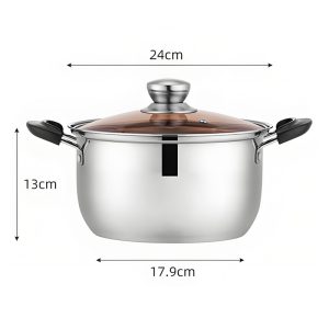 This cookware is made of 304 stainless steel, durable and long‑lasting with a mirror polish finish for easy cleaning. It supports steaming, boiling, simmering and stewing, making it highly versatile for daily cooking. The heightened design provides larger capacity, while the tempered glass lid is heat‑resistant and allows you to monitor cooking easily. It is compatible with induction cookers, gas stoves, infrared stoves and electric ceramic stoves. All products come in premium gift boxes, ideal for daily use and promotional gifts.
