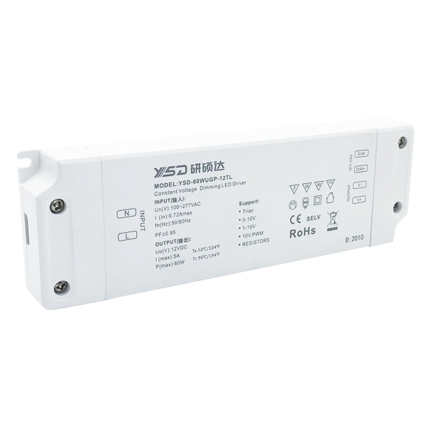 YSD 15 years power supply experience,60W dimmer power supply of GP series Triac + 0-10V dimmable power suuply /,dimmable light switch /,with 5 years warranty ;haveCE ,ROHs certificate,Soft and smooth, Flicker-free, Jitter free, A variety of dimming, simultaneous control, no interference; Widely used in light switch dimmer such as Europe, Australia and America(Lutron, Clipsal, Dynalite) series of dimmers; as well as philips hue dimming switch, input 170-264V/100-130V, PF>0.95,could be used for indoor decoration lighting , light strips,led outdoor christmas lights, 12v 24v dimmer switch power suuply. 200W dimmer light switch power supply. Very good quality with excellent components like adjustable resistance