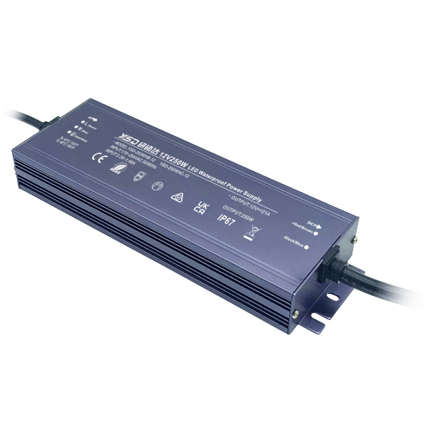 AC12V 250W POWER SUPPLY .YSD LED power supply is a professional manufacturing drivers company in China with over 15 years experience, YSD economic series -AB series of our IP67 waterproof power supply 24V 250W10.5A .Waterproof IP67 Thin Power Supply for Wash Wall, Fountain Lights with 3 years warranty,have CE ,ROHs ,BIS UKCA certificate;Passed EMC ,with anti-interference,anti-radiation;perfect choice for outdoor lighting project;input 170-264V/100-130V ,PF>0.6,could be used for outdoor decoration lighting , light strips,commercial light advertising board etc.Very good quality with excellent components inside