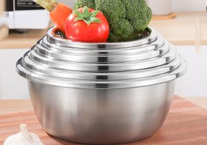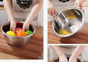 Food-grade 304 stainless steel bowl with durable construction. Multi-purpose design meets daily kitchen needs. Can be directly heated as a pot with even heat distribution. Deepened body for larger capacity. Sturdy, durable, and rust-resistant.