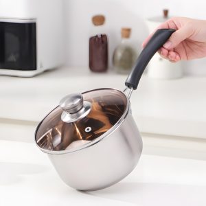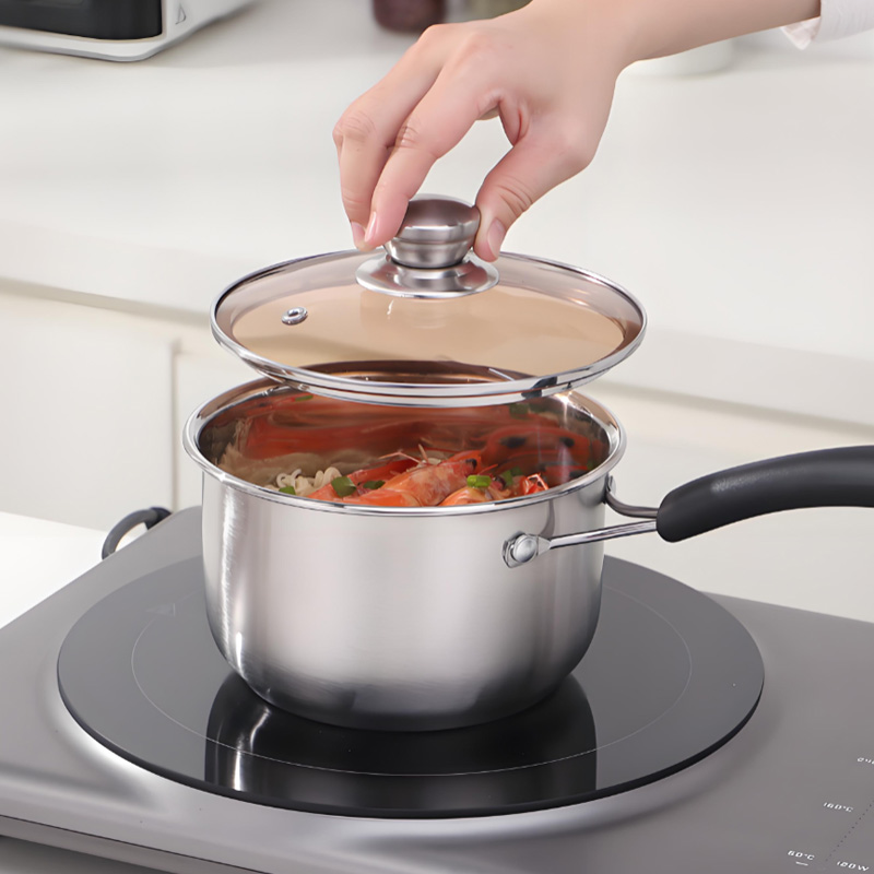 Made of international standard stainless steel with brushed finish for an elegant look. Multi-purpose pan for milk, noodles, porridge and soup. Tempered glass lid is heat-resistant and lets you monitor cooking easily. Cost-effective with great value, ideal for promotion and customer retention.