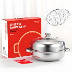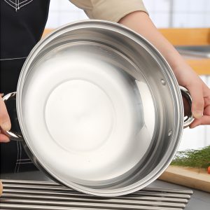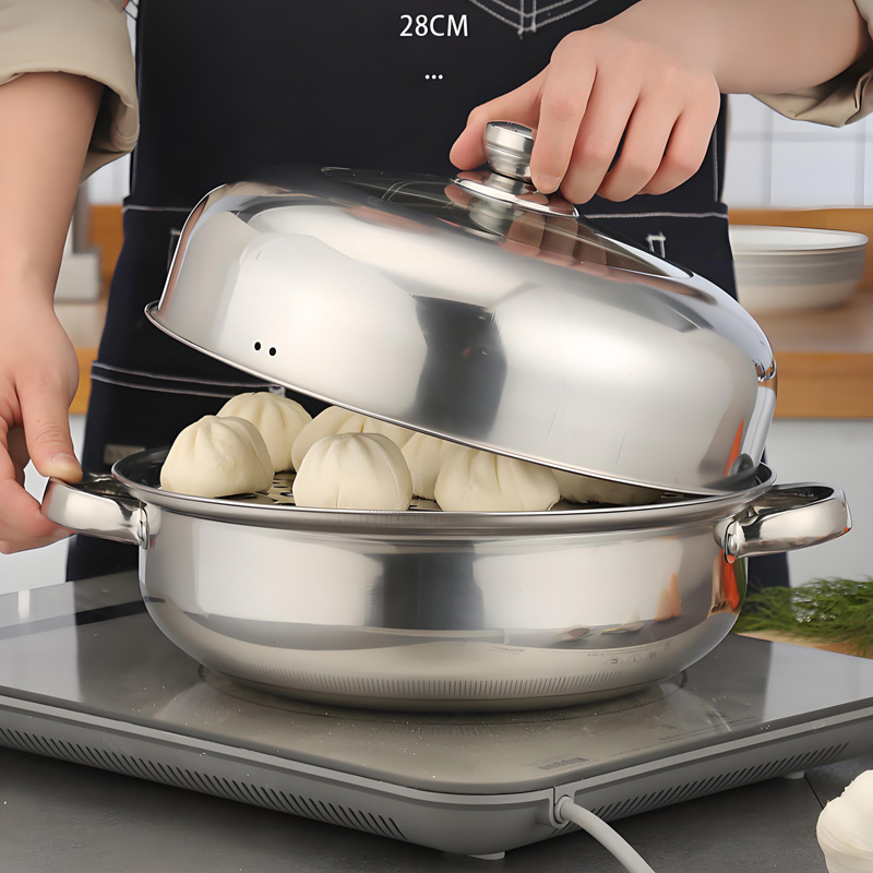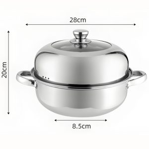 This 28cm thickened stainless steel pot features a dual-layer design for steaming, boiling and hot pot use. Equipped with sturdy dual handles for safe handling, it ensures even heat distribution and long-lasting durability. Compatible with induction cookers and all stoves, this multi-purpose soup steamer pot is not only practical for daily cooking but also an ideal gift choice for family and friends.