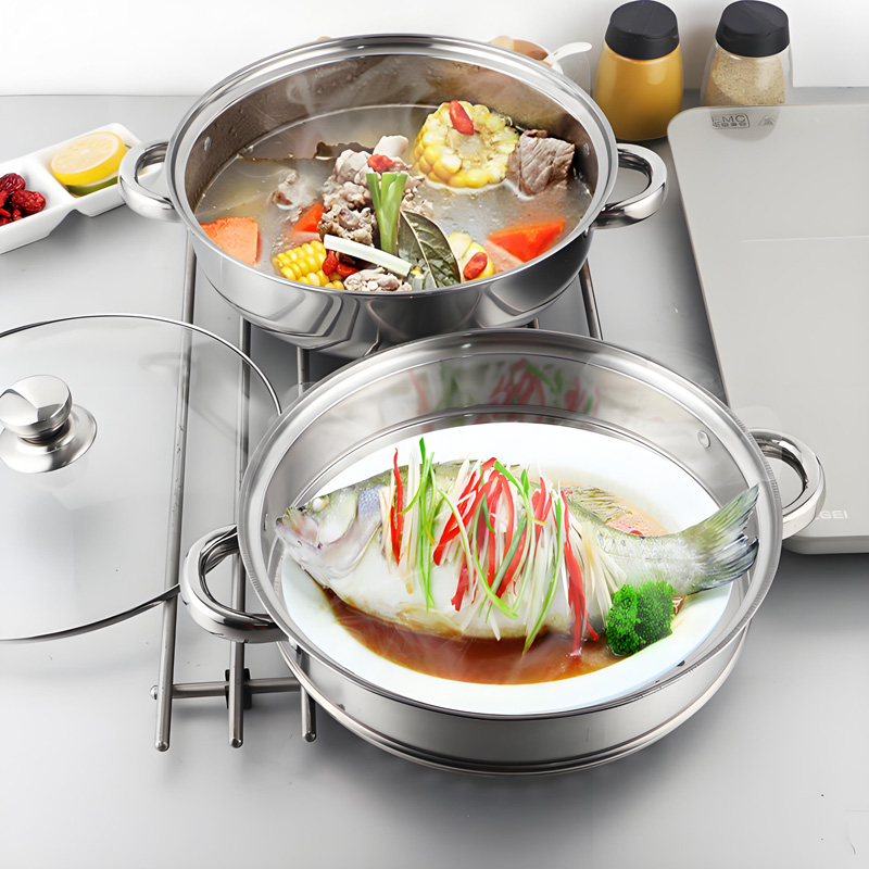 ● This thickened stainless steel 2-tier steamer pot is perfect for home kitchen use.
