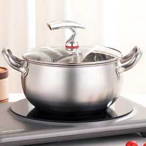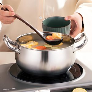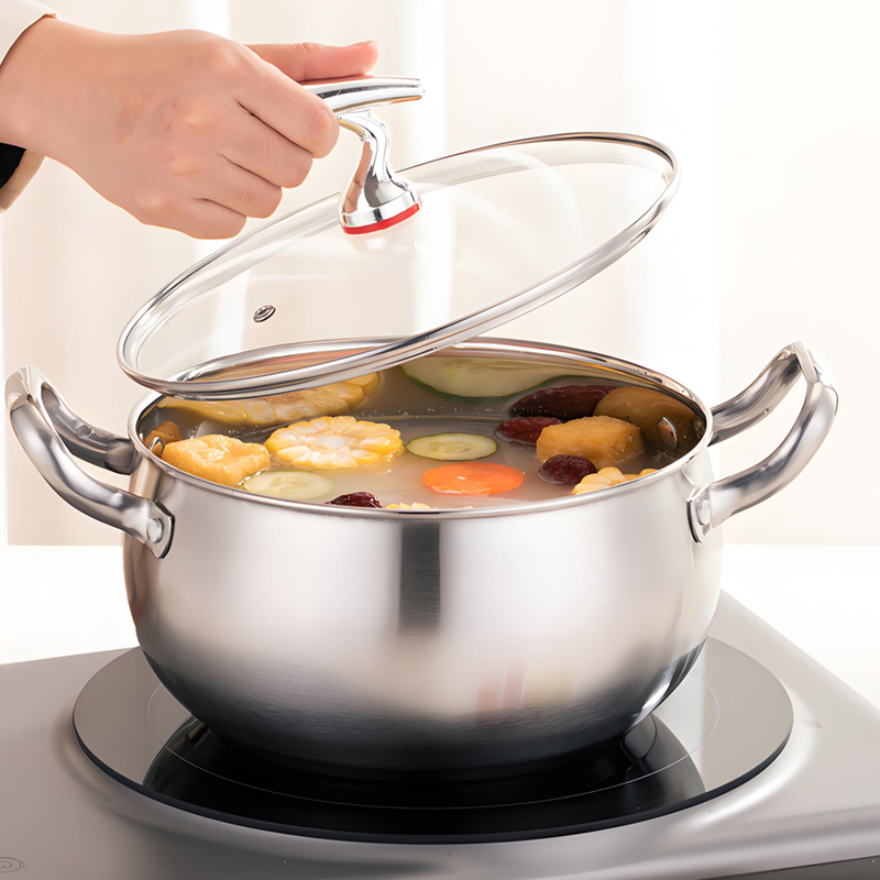 Durable thickened stainless steel soup pot with even heating, induction compatible, easy to clean, perfect for home stewing and daily cooking.