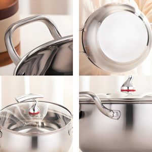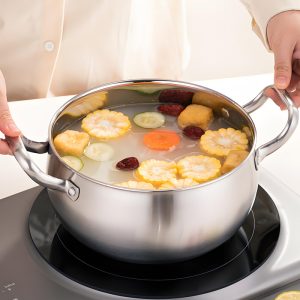 Crafted from high-quality thickened stainless steel, this soup pot combines durability, practicality and elegant design for modern kitchens. The reinforced thickened body ensures excellent heat conductivity and even heat distribution, allowing you to simmer, boil and stew delicious soups with consistent results every time. Designed to be compatible with induction cookers, gas stoves, electric stoves and other cooking surfaces, it offers outstanding versatility for daily household use. Featuring a smooth, easy-to-clean polished finish, it resists stains and maintains its sleek appearance for years. With sturdy construction and user-friendly design, this pot is built to withstand daily use while delivering reliable cooking performance. Whether for preparing family meals or as a thoughtful gift, this premium stainless steel soup pot is an essential addition to any home kitchen.